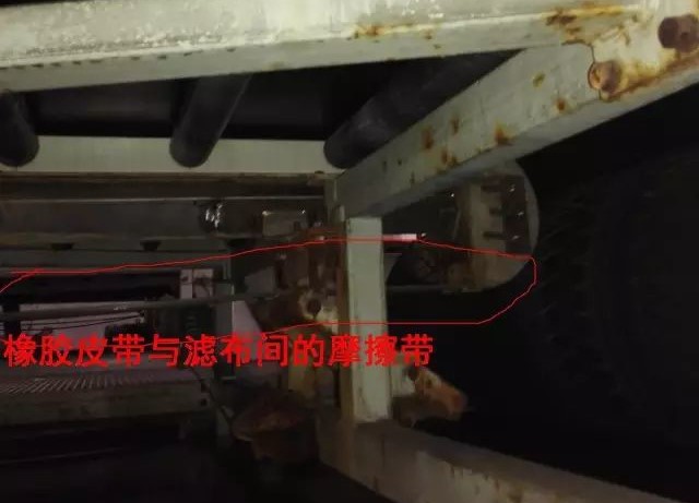 2、在滤布下方的橡胶大皮带的边缘有波形围裙的环形橡胶滤带,可以防止浆液从两侧流出。波形围裙与平形胶带黠合而成,这种结构的围裙伸缩性好,可以避免围裙经过辊筒改向处被撕裂。