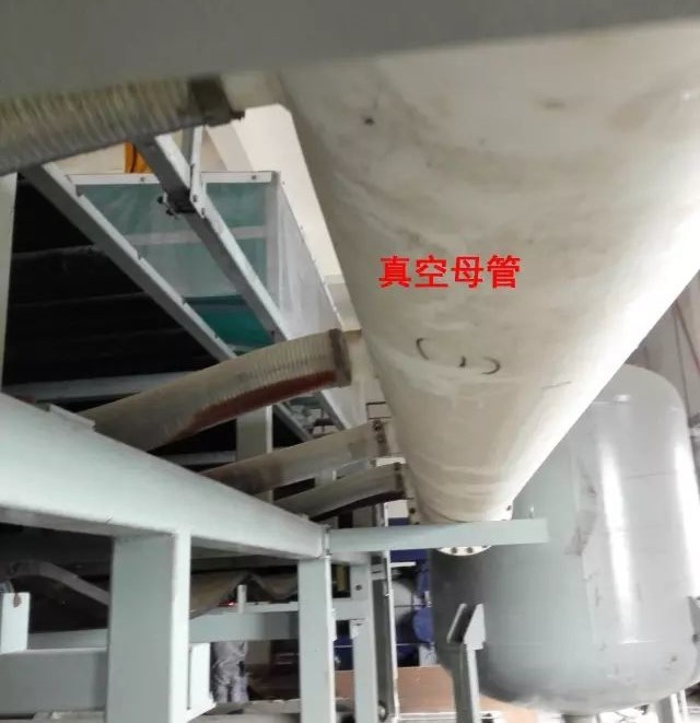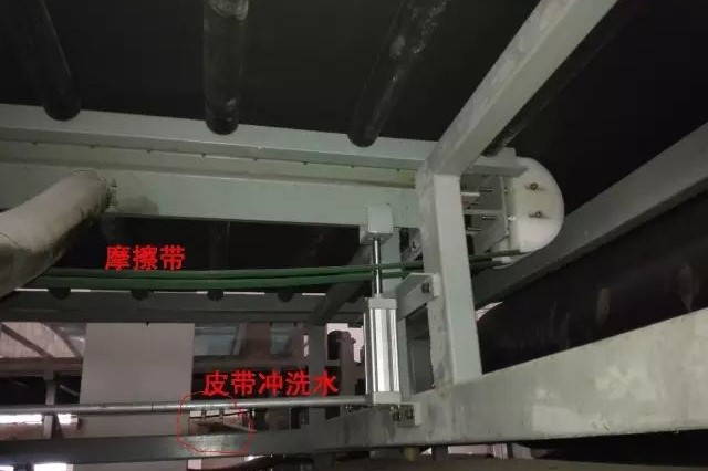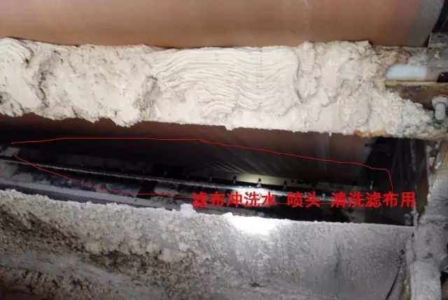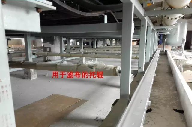 4、滤布通过多个辊筒在大皮带上移动,下方的大皮带有疏水槽,通过负压吸出石膏浆液中的水分,吸出的水分通过真空管汇集到真空母管进入气液分离器。为了提高石膏的品质,设有滤饼冲洗水。